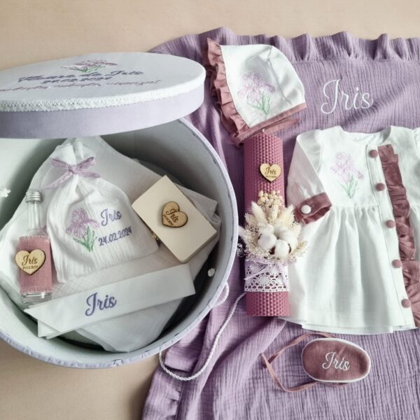 Un trusou creat pentru a adăuga un plus de emoție și eleganță botezului – totul ambalat cu grijă, gata de oferit sau folosit.