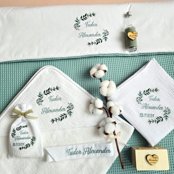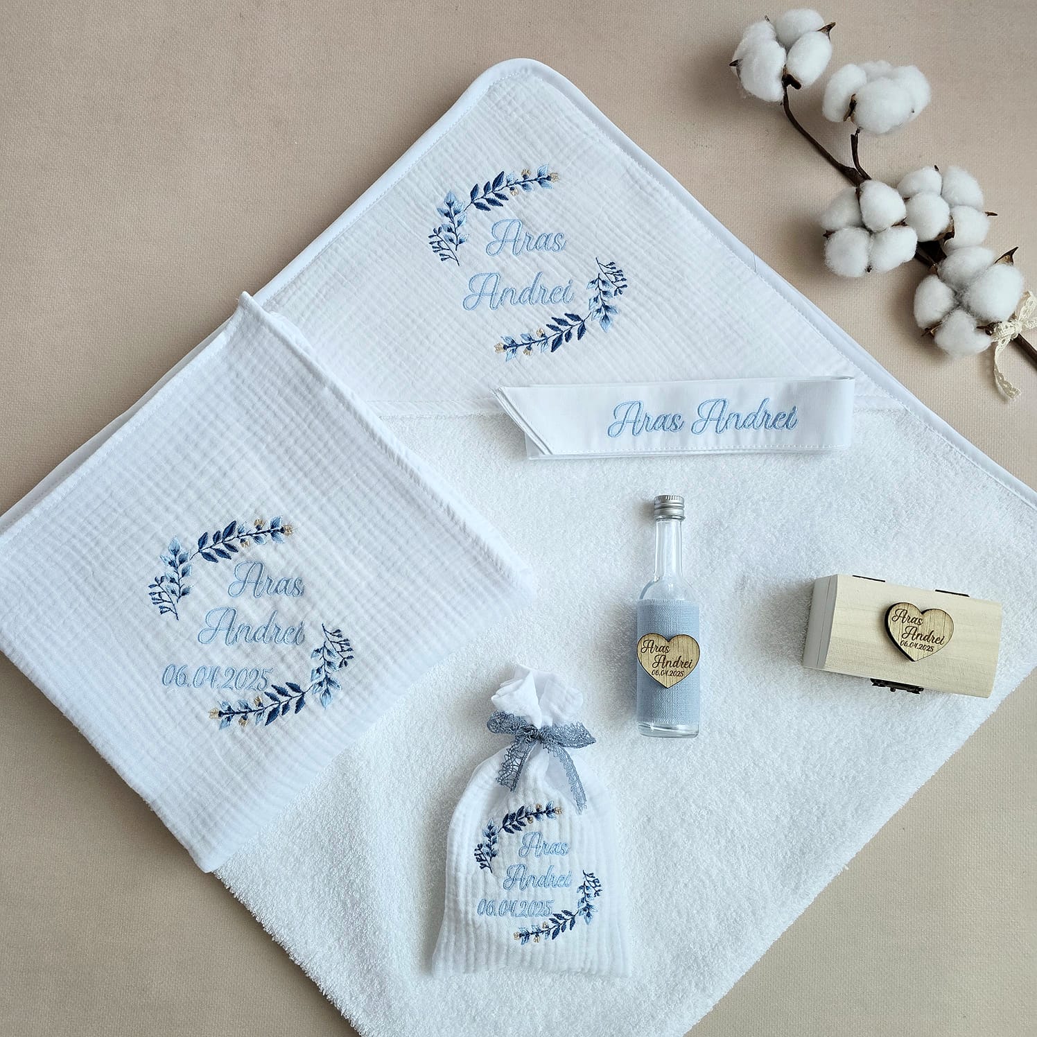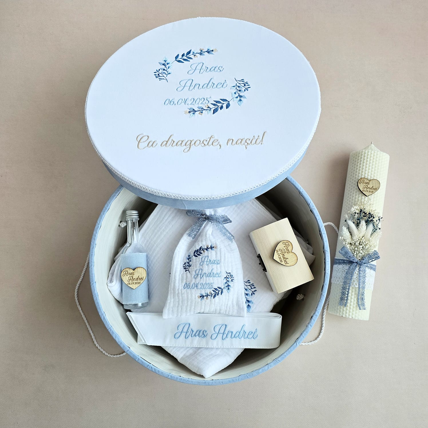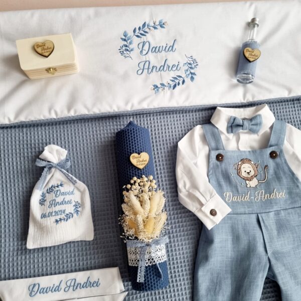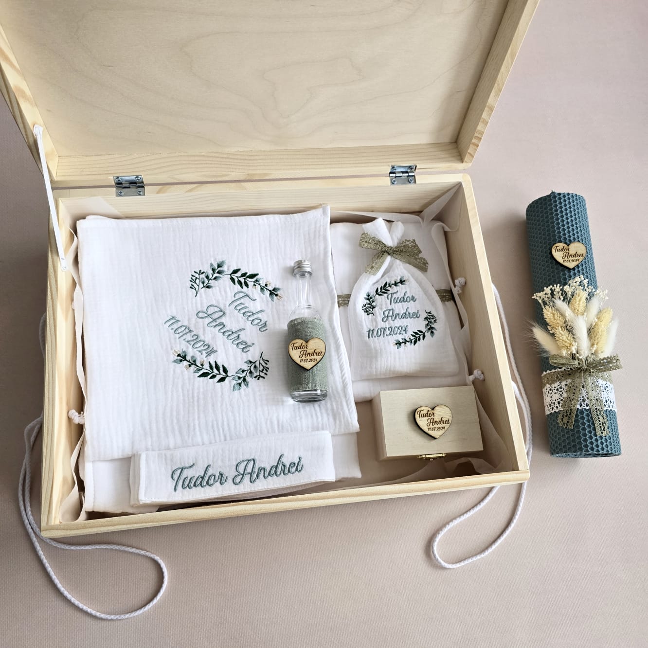Un trusou creat pentru a adăuga un plus de emoție și eleganță botezului – totul ambalat cu grijă, gata de oferit sau folosit.